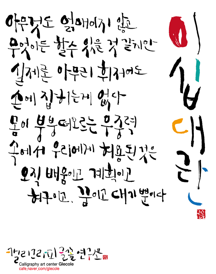 캘리그라피 글꼴연구소 자유작품 - 이십대란?